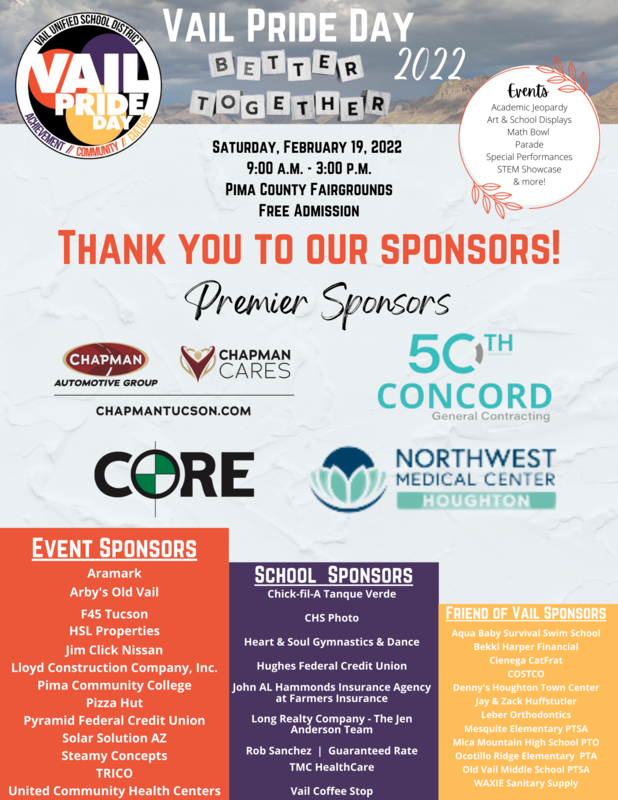 Vail Pride Day will be Saturday, February 19 from 9:00am-3:00pm at the Pima County Fairgrounds. View the activities in our virtual handbook here!