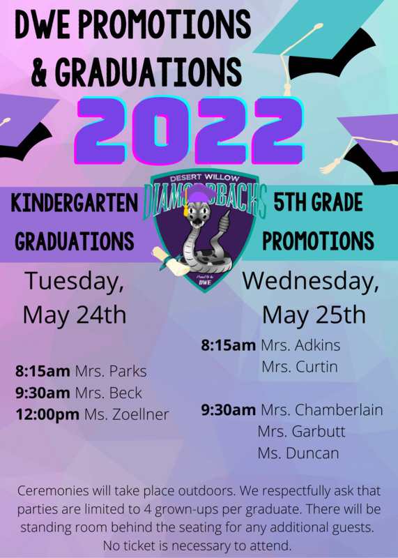 Fifth Grade promotion will be Wednesday, May 25.