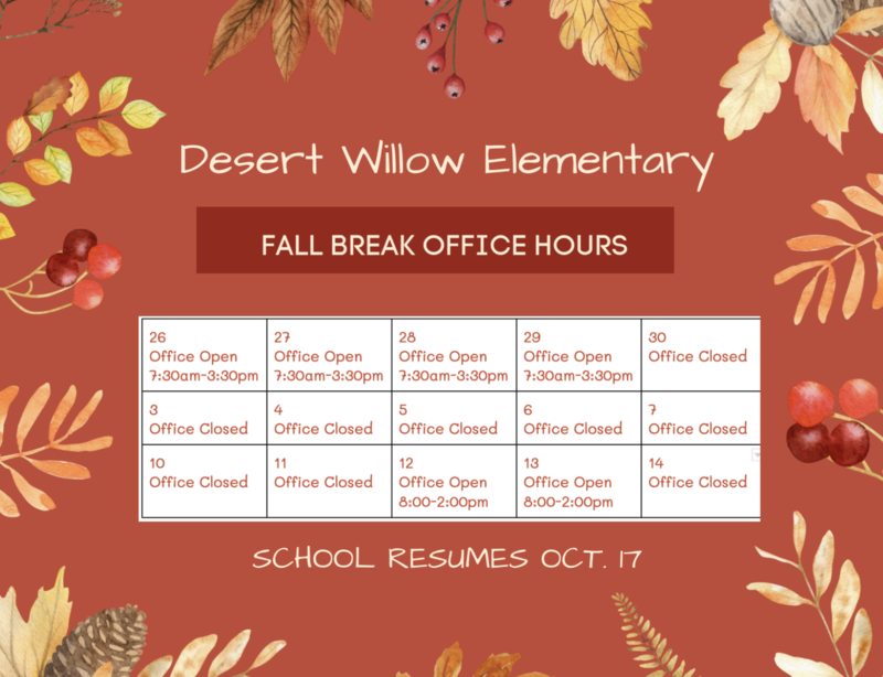 Our front office hours during Fall Break are posted below. School will resume Monday, October 17.